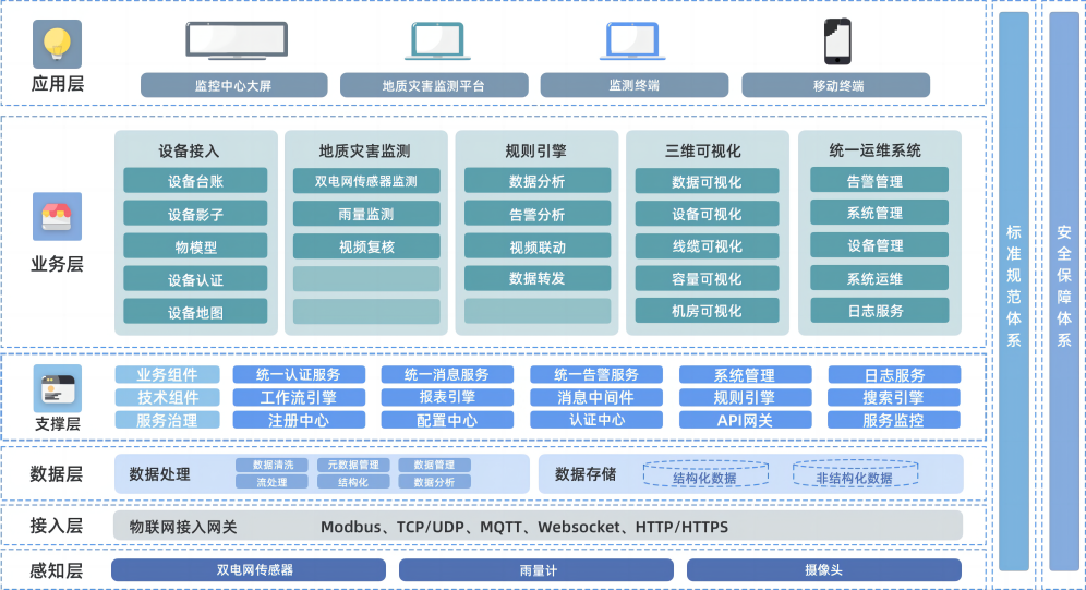 IMS6000防灾安全监控系统基于物联感知、边缘计算、继电控制、大数据等技术,针对危及行车运行安全的风、雨、雪、地震等自然灾害和公跨铁桥梁落物、隧道口落石等突发侵限事件等进行监测、预警、报警,为调度指挥人员给予限速、停运、维修、抢险等处置依据,提升灾害防范能力和灾前感知预警体系建设。